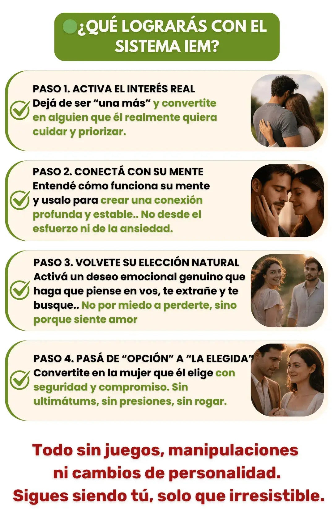 El sistema está diseñado para ayudarte a pasar de la duda a señales concretas de elección y prioridad, sin rogar, sin manipular y sin perder tu dignidad.
