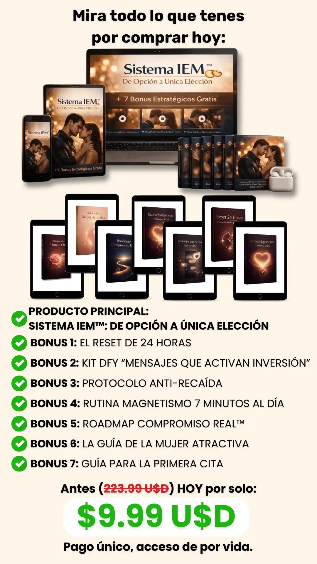Tenés acceso de por vida al Sistema IEM™ y a todos los bonus.